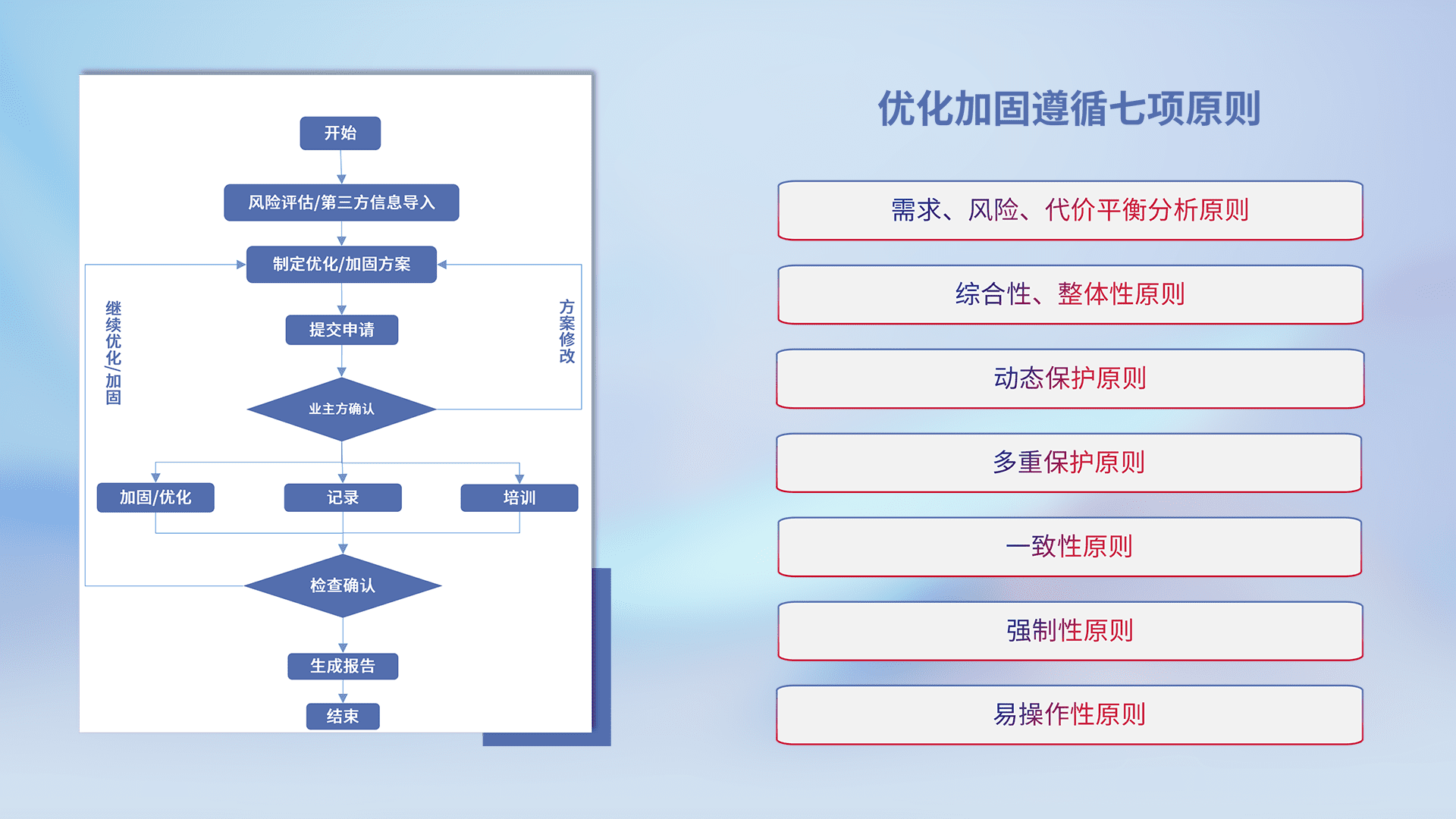 最大程度利用现有资产,,,,对评估发现的问题进行封堵与整改,,,,防止漏洞被利用,,提升整体网络安全性,,为客户带来高标准的优化加固服务。。。。